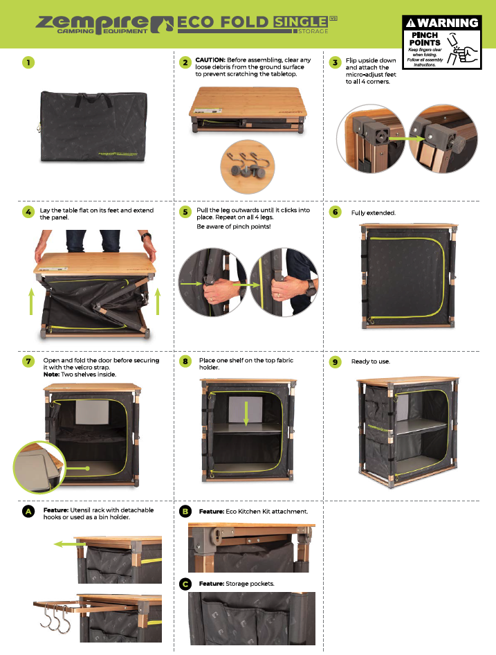 Our camp pantry keeps food, cookware and essentials organised and off the ground, making camp meals easier and tidier. It sets up in seconds, packs away flat, and gives you plenty of shelf space, side pockets and a handy work surface - all in a sturdy, good-looking unit that fits neatly back into the trailer.