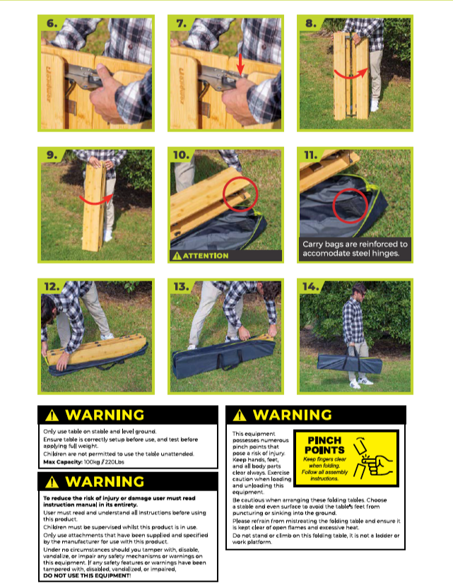 Our camp table is solid, stable, and made for real campsite use. It features a sturdy aluminium frame with a smooth, heat-resistant bamboo top that’s tough enough for cooking, meals, and everything in between. The height-adjustable legs let you level it easily on uneven ground, while the clever folding design packs down compactly for transport. There’s even a built-in bottle opener to make camp life even easier.